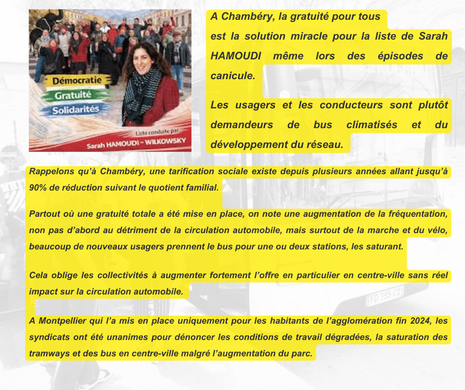 1) Pour les usagers des transports en commun, l’important n’est pas la gratuité mais la tarification sociale, le développement et la modernisation du réseau.