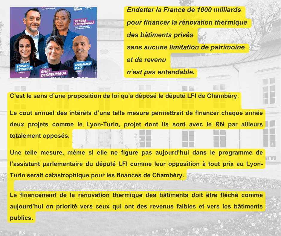 2) La proposition de loi du député LFI de Chambéry pour le financement à 100% de la rénovation thermique des bâtiments privés quel que soit les revenus et le patrimoine des propriétaires