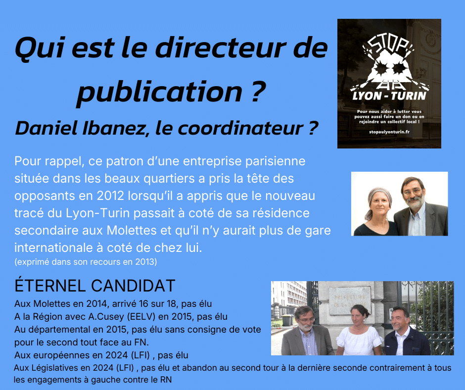 Pour rappel, ce patron d’une entreprise parisienne située dans les beaux quartiers a pris la tête des opposants en 2012 lorsqu’il a appris que le nouveau tracé du Lyon-Turin passait à coté de sa résidence secondaire aux Molettes et qu’il n’y aurait plus de gare internationale à coté de chez lui.