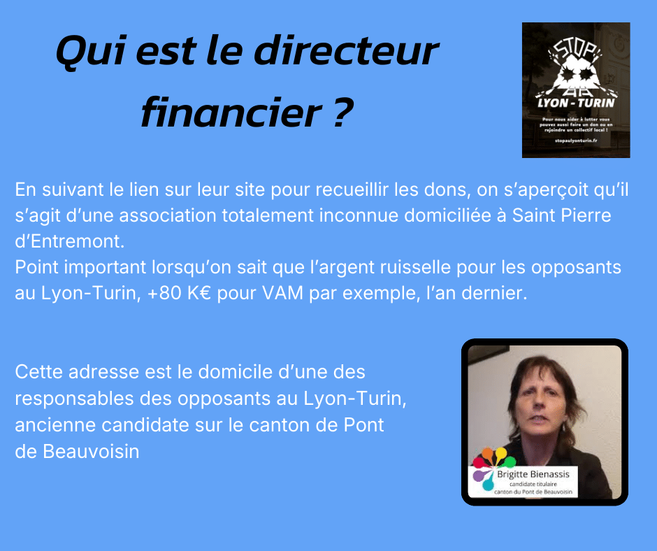 Point important lorsqu’on sait que l’argent ruisselle pour les opposants au Lyon-Turin, +80 K€ pour VAM par exemple, l’an dernier.